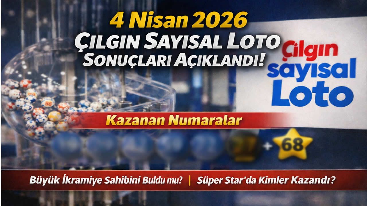 HABER49-Dün akşam, 4 Nisan 2026 Cumartesi günü düzenlenen Çılgın Sayısal Loto çekilişi, Sisal Şans denetiminde ve noter huzurunda gerçekleştirildi. Saat 21.30’da başlayan çekiliş, Milli Piyango TV Youtube kanalı üzerinden canlı olarak yayınlandı. Çekiliş sonrası şans oyunu meraklıları, kazandıran rakamları öğrenmek için online sorgulama ekranına yoğun ilgi gösterdi. www.millipiyangoonline.com üzerinden anında sonuç sorgulama imkânı sunuluyor. Çekiliş sonrası 4 Nisan Çılgın Sayısal Loto kazanan numaraları da resmi olarak duyuruldu.