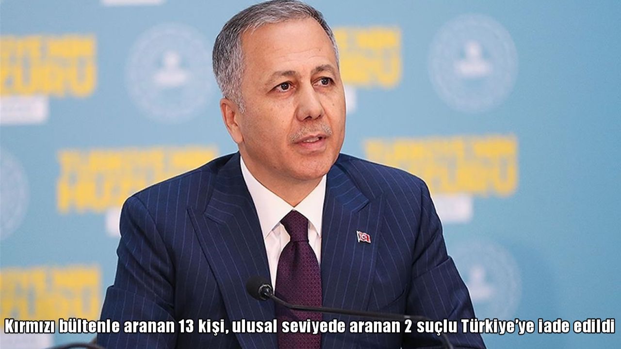 HABER49- İçişleri Bakanı Ali Yerlikaya, uluslararası operasyonlar kapsamında kırmızı bültenle aranan 13, ulusal seviyede aranan 2 suçlunun Türkiye'ye iade edildiğini açıkladı.