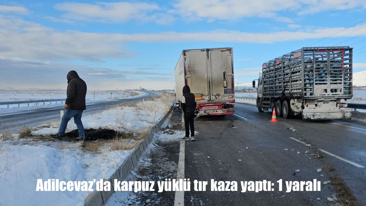 haber49-Kaza, Adilcevaz–Erciş kara yolu üzerinde meydana geldi. Edinilen bilgilere göre, İran'dan Mersin'e karpuz taşıyan, sürücülüğünü Yunus İmuk'un yaptığı 72 AAZ 968 plakalı tır, Erciş'ten Adilcevaz istikametine seyir halindeyken henüz bilinmeyen bir nedenle kontrolden çıktı. Savrulan tır, yol kenarındaki bariyerlere çarparak durabildi. İhbar üzerine olay yerine sağlık ve jandarma ekipleri sevk edildi. Kazada hafif şekilde yaralanan sürücüye sağlık ekipleri tarafından olay yerinde ilk müdahale yapıldı. Yaralının hayati tehlikesinin bulunmadığı öğrenildi.