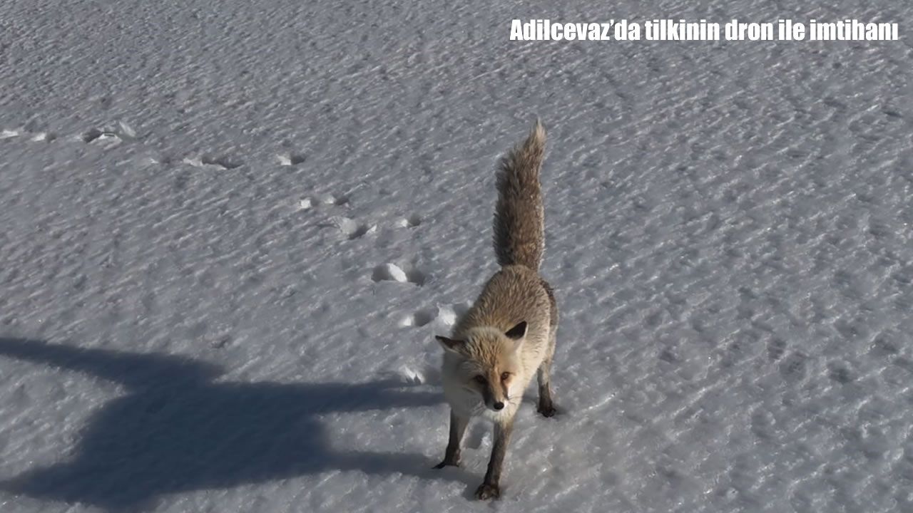 Kar üzerinde yiyecek aradığı tahmin edilen tilki, bir anda üzerine gelen dronun sesini fark etti. Önce kısa süreli duraksayan hayvan, ardından hızla yön değiştirerek uzaklaşmaya çalıştı. Ancak bir süre sonra drona doğru temkinli adımlar attı.
