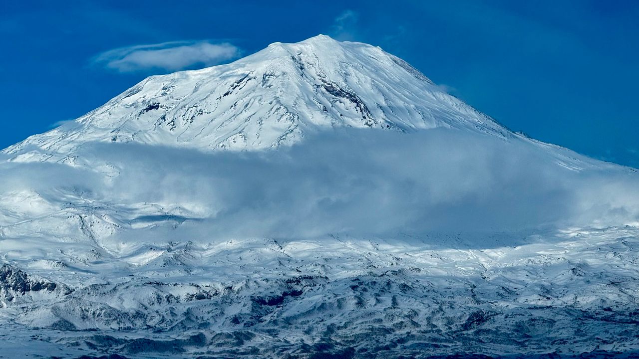 HABER49-Doğubayazıt ilçesinde yer alan dağ, deniz seviyesinden 5 bin 137 metre yüksekliğiyle “Türkiye’nin çatısı” olarak biliniyor. Ağrı Dağı, sadece yüksekliğiyle değil, etkileyici manzarasıyla da dikkat çekiyor. Bölgedeki tepeler arasında heybetiyle yükselen dağ, yol boyunca sürücülere ve doğa tutkunlarına eşsiz bir görsel şölen sunuyor. Zirvesindeki kar, yılın büyük bölümünde beyaz örtüsünü koruyarak bölgeye farklı bir güzellik katıyor. Dağın eteğindeki köyler ve doğa ile birleşen manzara, fotoğraf tutkunları için eşsiz kareler oluşturuyor.