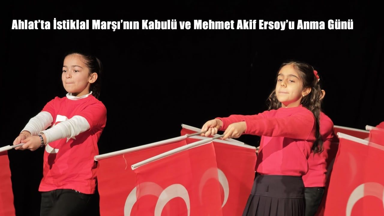 haber49-Ahlat Halk Eğitimi Merkezi Müdürlüğü konferans salonunda düzenlenen program, Vakıfbank İlkokulu ve Ertuğrulgazi Ortaokulu tarafından hazırlandı. Saygı duruşu ve İstiklal Marşı'nın okunmasıyla başlayan program, günün anlam ve önemini belirten konuşmayla devam etti. Daha sonra Mehmet Akif Ersoy'un hayatının anlatıldığı video gösterimi yapıldı. Ardından program, öğrenciler tarafından şiirlerin okunması, bayrak gösterisi ve oratoryo gösterileriyle devam etti.