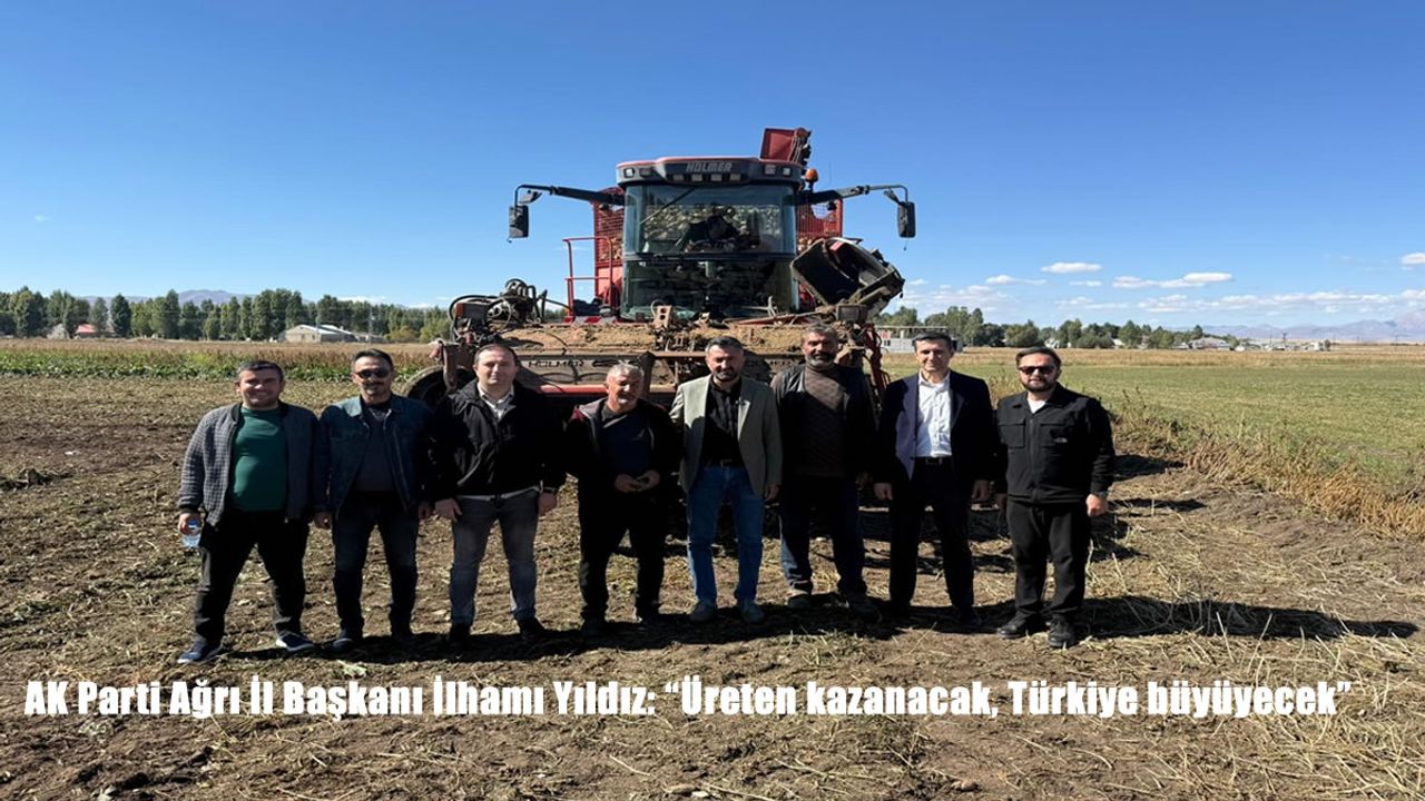 HABER49-AK Parti Ağrı İl Başkanı İlhamı Yıldız, Tanıtım ve Medya Başkanı Ömer Faruk Atalay ile birlikte pancar hasadı programına katıldı. İl Tarım ve Orman Müdürü Mehmet Hüseyinoğlu'nun da eşlik ettiği programda, çiftçilerle bir araya gelen İl Başkanı Yıldız, sahada üreticilerin emeklerine yakından şahit olduklarını belirtti.