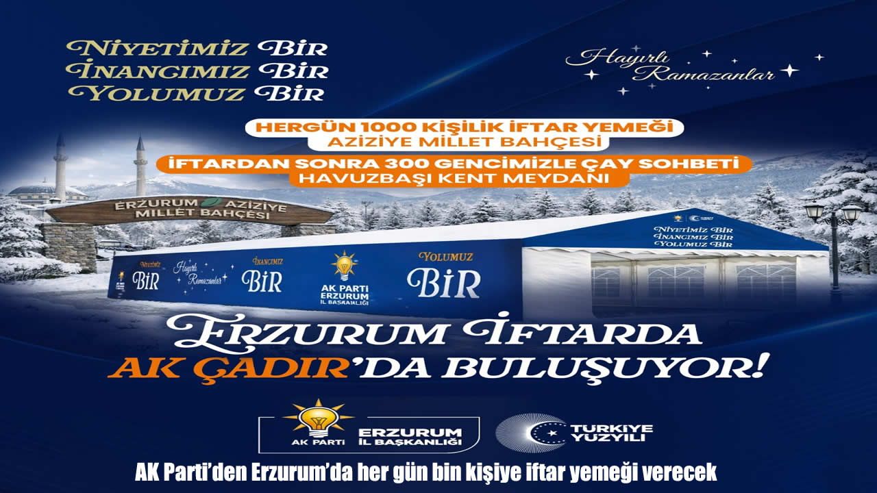 Program kapsamında Erzurum’da, Aziziye Millet Bahçesi’nde her gün bin kişilik iftar yemeği verilecek. Ayrıca Havuzbaşı Kent Meydanı’nda gençlere yönelik çay sohbetleri düzenlenecek.