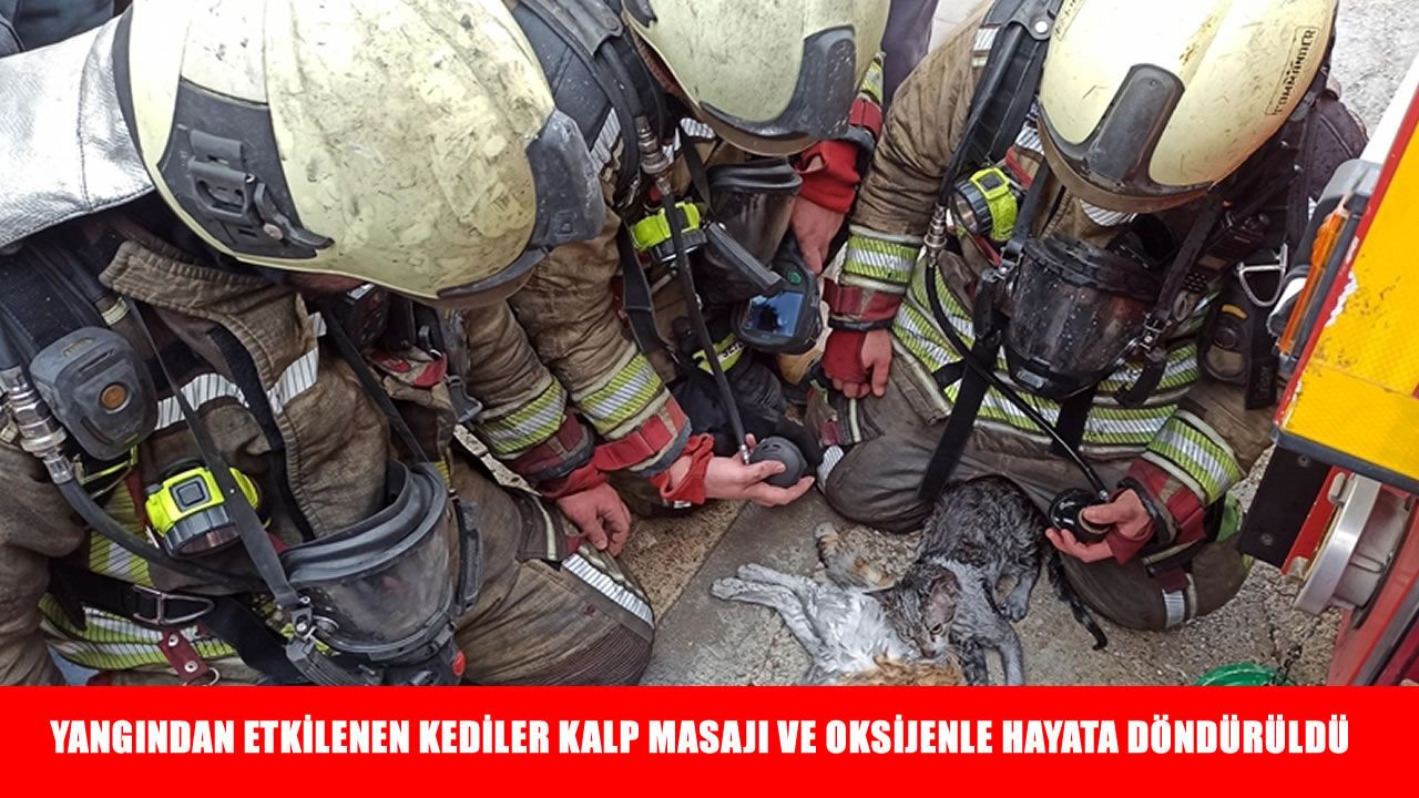 Dumandan etkilenen Paytak ve Şanslı isimli kedilere sağlık ekipleri kalp masajı yaptı, oksijen vererek hayata döndürdü.