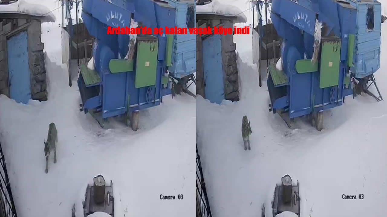 HABER49- Ardahan'da olumsuz hava şartları nedeniyle aç kalan vaşak, köye indi.