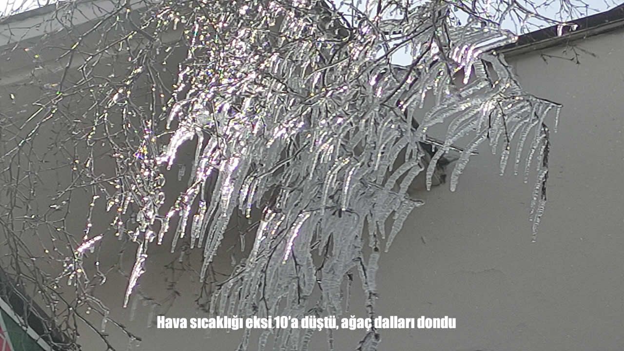 HABER49- Hava sıcaklığının sıfırın altına 10 dereceye kadar düştüğü Ardahan'ın Göle ilçesinde ağaç dalları buz tuttu. Ağaçlardaki kristalize güzellik görenleri mest etti.