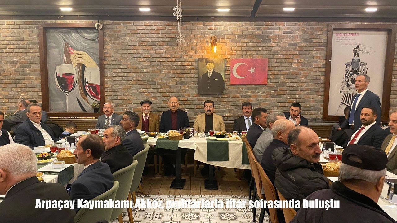 HABER49- Arpaçay Kaymakamlığı’nca Kars merkezde bir restoranda düzenlenen iftar yemeğine Kaymakam Muhammed Burak Akköz’ün yanı sıra Arpaçay Belediye Başkanı Zeki Elma, İl Genel Meclis Üyeleri Lütfü Çelik ve Erdi Yıldırım, siyasi parti ilçe başkanları, Muhtarlar Dernek Başkanı Yusuf Baştımar, kaymakamlık personelleri, Özel İdare Şantiye çalışanları ile çok sayıda mahalle ve köy muhtarı katıldı.
