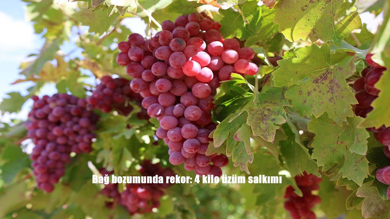 Sezonun en büyük üzüm salkımını topladıklarını belirten Necip Ekinci, "Üzüm yetiştiriciliği yapıyoruz. Bölgesel olarak üzüme elverişli olan topraklardayız. Ağın cinsi üzüm üretmekteyiz. Dönem olarak bu yıl don olayından etkilendik. Bahar ayında yaşadığımız dondan dolayı hem kalitemiz düştü hem tonaj olarak da verimimiz düştü. Yani her yıl yüzde 100 aldığımız ürün oranını, bu sene yüzde 35 ile 40 oranında almaktayız. Ama şu anda yine memnunuz. Fiyatlarımız şu anki güncel ortamda güzel. Bölgemizin, su kaynaklı problemleri oluyor. Topraklarımız suya elverişli bir toprak değil. Salkım, bu sene rekor olarak 4 kilo 700 gram geldi. O da bu senenin en büyük salkımı, diyebiliriz. Genel olarak salkım kilo ağırlıkları 1 kilogram ile 2 kilogram arasında olan çok oluyor ama en büyük salkımımız 4 kilo 700 gram geldi" dedi.