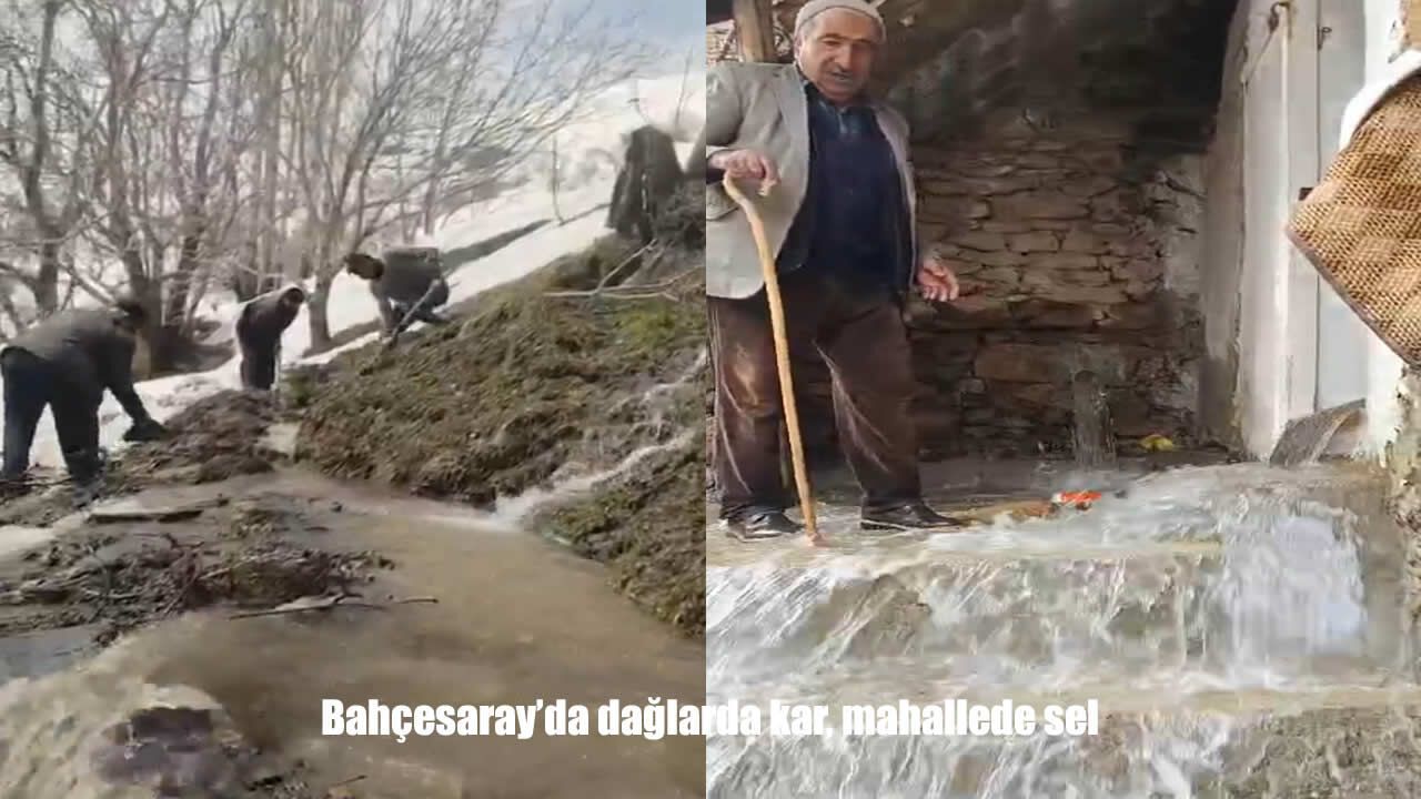 HABER49- Van’ın Bahçesaray ilçesinde doğa, aynı gün içinde iki farklı yüzünü gösterdi. Karla örtülü dağlar kış mevsimini andırırken, mahallelerde sağanak yağış sele neden oldu.