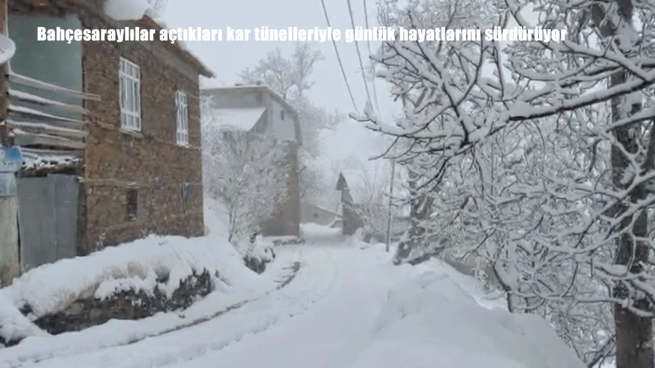 Van'ın yüksek rakımlı ilçesi Bahçesaray'da etkili olan yoğun kar yağışı ve tipi, hayatı olumsuz etkiledi. Kar kalınlığının yer yer 2 metreyi aştığı bölgede vatandaşlar, evlerinden çıkabilmek ve günlük ihtiyaçlarını karşılayabilmek için kar tünelleri açtı. İlçeye bağlı Çatbayır Mahallesi sakinleri, sabahın erken saatlerinde küreklerle çalışarak evlerinin kapısına kadar dayanan karı temizliyor. Açılan dar tüneller sayesinde ahırlara ulaşan besiciler, hayvanlarının bakımını aksatmadan sürdürüyor. Kar tünelleriyle adeta beyaz bir labirenti andıran mahallelerde, hayat tüm zorluklara rağmen devam ediyor.
