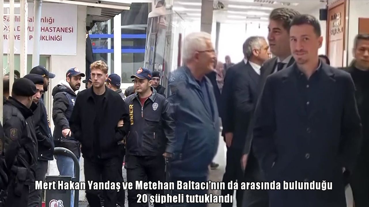 HABER49- Futbol dünyasında 'bahis oynama' iddiasına yönelik yürütülen soruşturma kapsamında aralarında Mert Hakan Yandaş, Metehan Baltacı ve Murat Sancak'ın bulunduğu 20 şüpheli çıkarıldığı nöbetçi hakimlikçe tutuklandı. Aralarında Zorbay Küçük, Salih Malkoçoğlu, Samet Karabatak ve Tolga Kalender'in de bulunduğu 19 şüpheli ise adli kontrol şartıyla serbest bırakıldı.