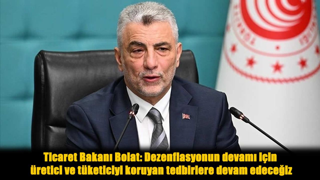 Ticaret Bakanı Ömer Bolat, dezenflasyon sürecinin hız kesmeden devamı için fahiş fiyat ve stokçulukla mücadele başta olmak üzere piyasa işleyişini bozucu uygulamalara karşı denetimleri sürdüreceklerini, üreticiyi ve tüketiciyi gözeten tüm tedbirleri etkin şekilde uygulamaya devam edeceklerini bildirdi.