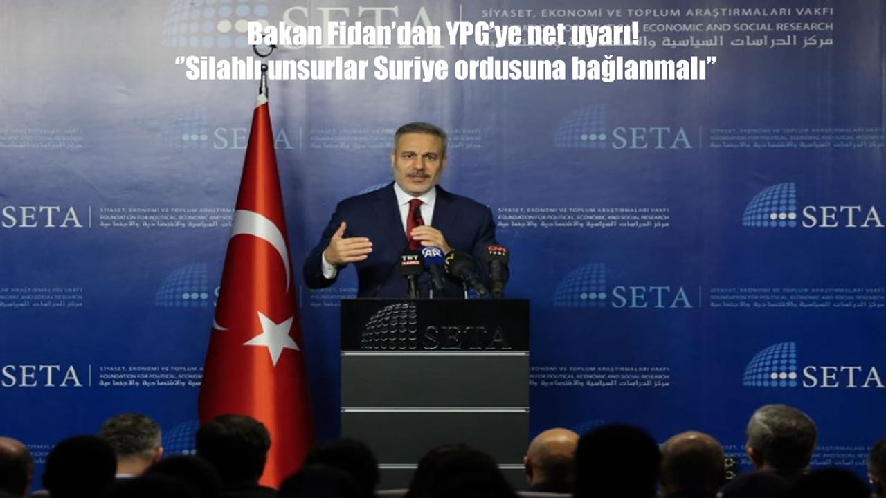 HABER49- Dışişleri Bakanı Hakan Fidan, katıldığı "Bir Yılın Ardından Suriye: Toparlanma ve Yeniden İnşa" konulu konferansta YPG/SDG yapılarının geleceğinin Suriye’nin istikrarı açısından belirleyici olduğunu söyledi. Suriye’de "iki silahlı yapının bir arada bulunabileceği bir ülke modelinin mümkün olmadığını" belirten Fidan, bu unsurların Şam yönetiminin kontrolüne girmesi gerektiğini vurguladı. Bakan Fidan, Şam yönetimi ile YPG arasında 2025 Mart ayında varılan mutabakata atıfta bulunarak, bu anlaşmada şu ana kadar somut bir ilerleme kaydedilemediğini vurguladı. Fidan, "En son Doha Forumu sebebiyle Dışişleri Bakanı kardeşim Esat Şeybani ile de konuştuğumda çok fazla olumlu gelişmenin olmadığını söyledi. Biz Türkiye olarak bu sürecin ilerletilmesini, sulh ile meselelerin çözülmesini, yeni bir çatışmanın, yeni bir karşı karşıya gelişin kimsenin lehine olmayacağını her zaman için söylüyoruz. Dolayısıyla burada sürecin diyalog yoluyla ilerletilmesi önemli. YPG’nin şunu görmesi gerekiyor. Hiçbir ülkede iki tane silahlı unsur olmaz.