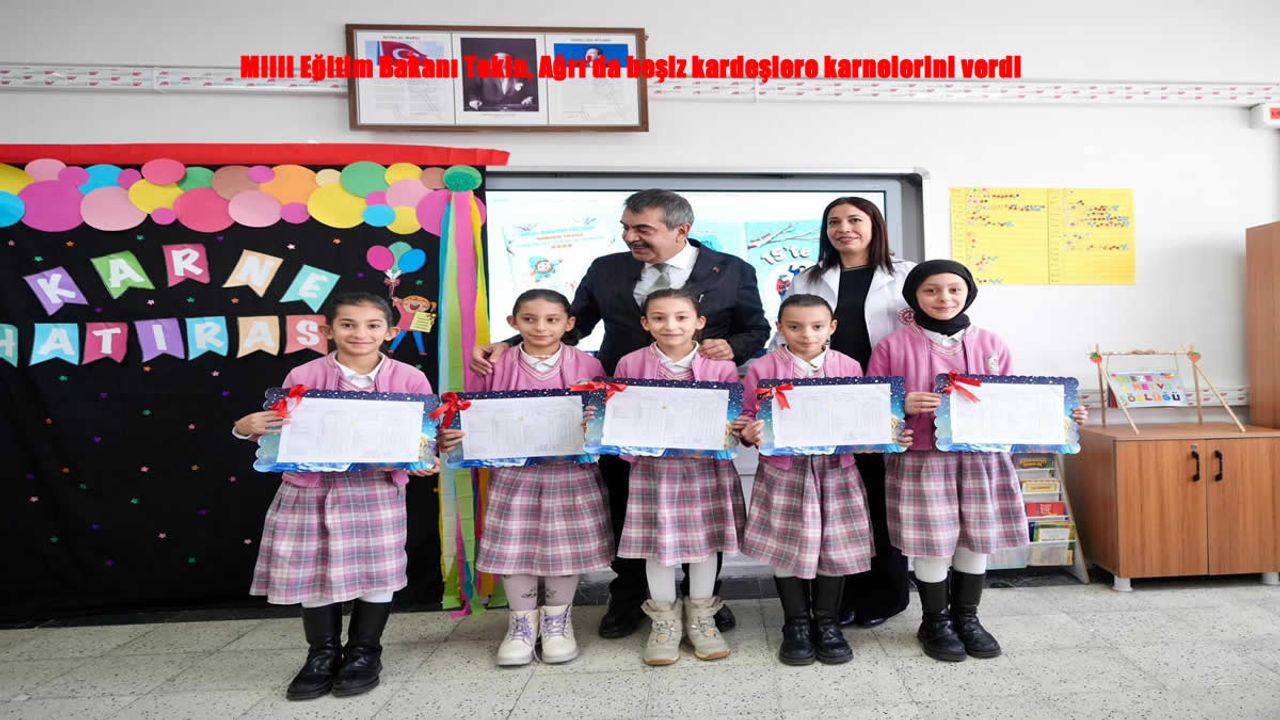 HABER49- Milli Eğitim Bakanı Yusuf Tekin, 2025-2026 eğitim öğretim yılının birinci döneminin sona ermesiyle birlikte Ağrı’da anlamlı bir karne ziyaretine imza attı. Ağrı İbrahim Çeçen İlkokulunu ziyaret eden Bakan Tekin, 4/A sınıfında eğitim gören beşiz kardeşlerin karne sevincine ortak oldu.