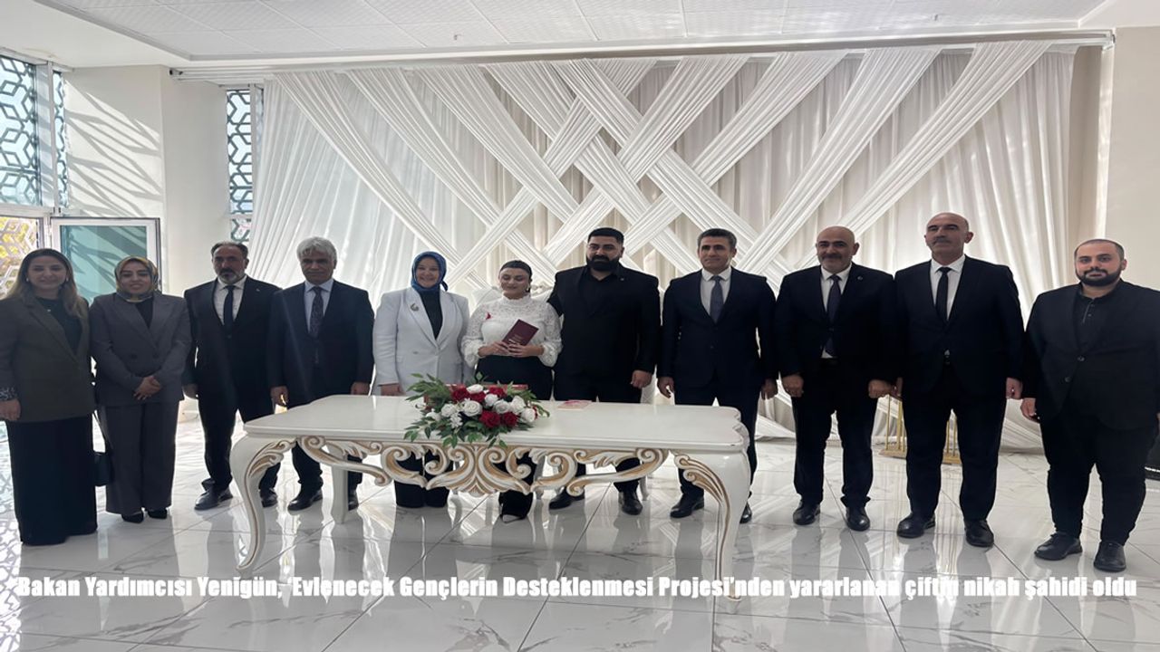 HABER49-Aile ve Sosyal Hizmetler Bakanlığı tarafından hayata geçirilen 'Evlenecek Gençlerin Desteklenmesi Projesi' ülke genelinde sürüyor. Bu çerçevede Serhat Çaparlar ve Yıldız Kılıçgedik, destek almaya hak kazandı. Çiftin nikah şahitlerinden biri ise Aile ve Sosyal Hizmetler Bakan Yardımcısı Leman Yenigün oldu.
