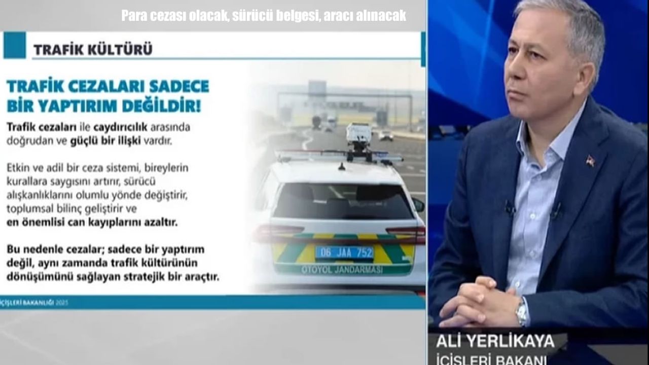 Trafikte makas atma ve akrobatik sürüşlerin tamamen ortadan kaldırılması için kararlı olduklarını belirten Bakan Yerlikaya, bu davranışların artık ciddi sonuçları olacağını söyledi. “Makas atanların ehliyetleri 60 gün süreyle alınacak, araçları 2 ay trafikten men edilecek ve 90 bin lira para cezası kesilecek” dedi.
