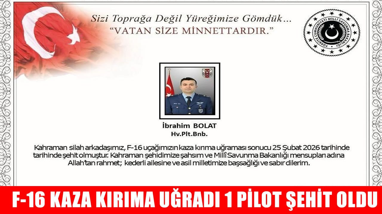 Balıkesir'de F-16'nın kaza kırıma uğraması sonucu Hava Pilot Binbaşı İbrahim Bolat şehit oldu.