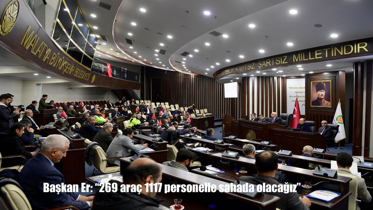 Sunumda, ayrıca Malatya merkez ve kırsalda kış tedbirleriyle alakalı olarak yapılacak olan çalışmalar hakkında bilgiler verildi. Karla mücadele kapsamında merkezde 118, kırsalda 151 olmak üzere 269 araç ile birlikte 1117 personelin hazır bulunacağı bildirildi.