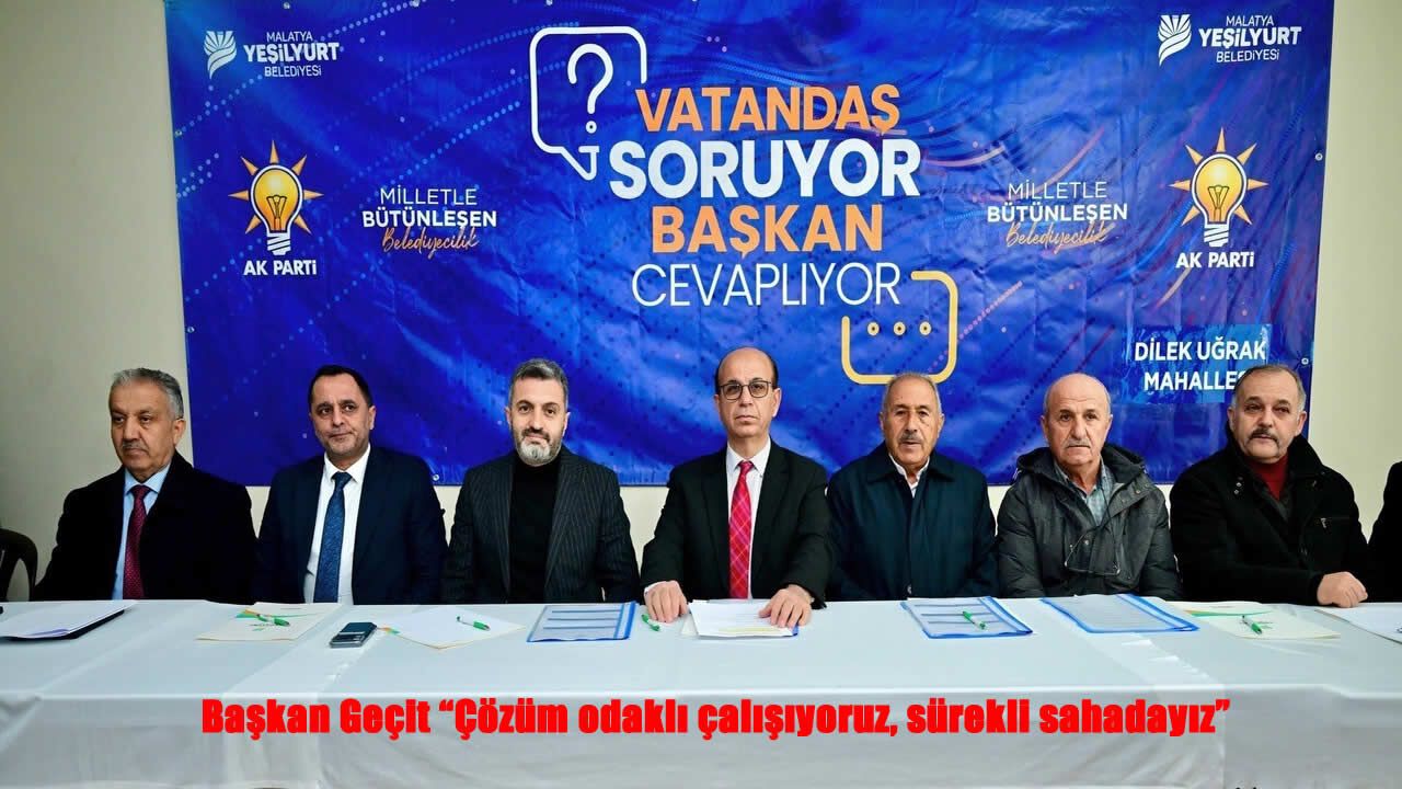Başkan Geçit, haftanın 7 günü sahada olduklarını belirterek, sorunları yerinde tespit edip ekiplerle birlikte hızlı çözümler üretmeye gayret ettiklerini ifade etti. Mahalle toplantılarının hizmet planlamasında önemli bir rehber olduğunu kaydeden Geçit, belediyeciliği masa başında değil, sahada yürüttüklerini vurguladı.