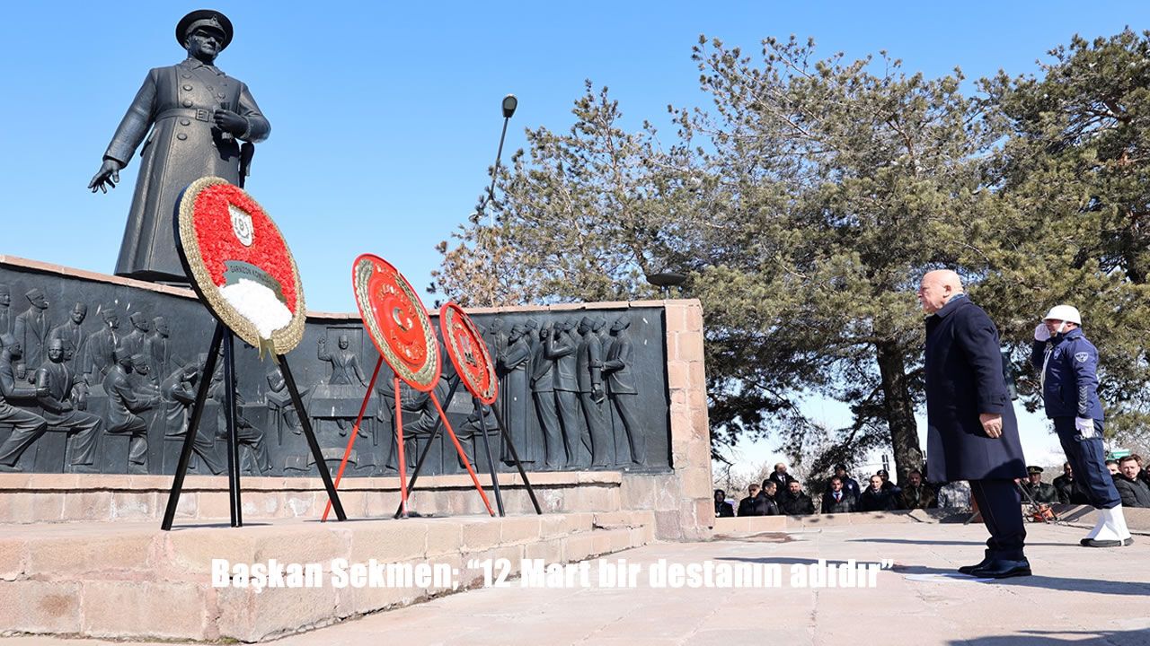 "Doğu’nun muzaffer kumandanı Kazım Karabekir Paşa komutasındaki Birinci Kafkas Kolordusu geceli gündüzlü savaşarak, 12 Mart 1918 sabahı Erzurum’u düşman işgalinden kurtarmıştır" diyen Başkan Sekmen, şöyle devam etti: "Türk Ordusu, milletiyle birlikte Ermeni işgal ve zulmüne son vermiş, Erzurum’u yeniden ay yıldızlı bayrağımızla kucaklaştırmıştır. Bu yüzden 12 Mart; Türk’ün tarihinde önemli sayfa, kutlu bir zafer günüdür. 12 Mart; Erzurum için tarihin bin bir facialarını örten bir teselli ve saadet günüdür. 12 Mart; aslında sadece Erzurum’un Ermeni çetelerinden kurtuluşu değil, Türkiye’nin emperyalist devletlerin işgallerinden de kurtuluşunun müjdecisidir."