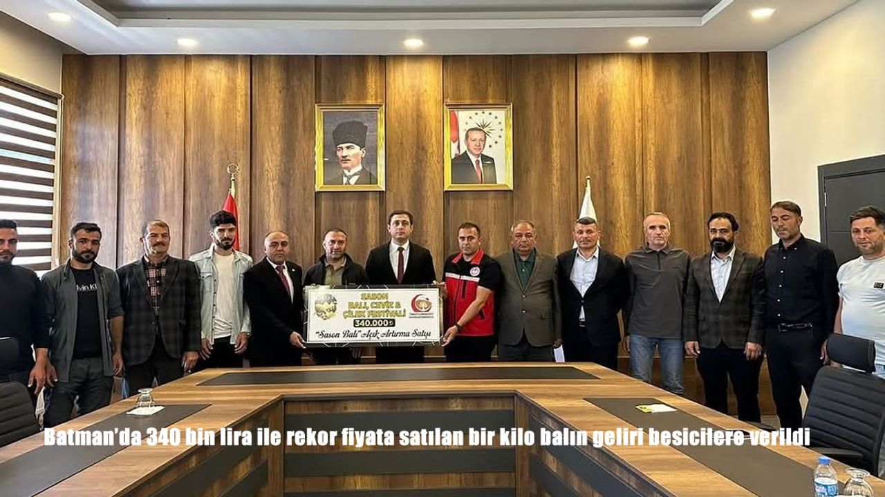 HABER49-Sason Kaymakamlığı bünyesinde "Örnek Ürün Örnek İlçe Projesi" dahilinde üretilen ve Ege Üniversitesi tarafından numune analizi yapılarak ülkede üretilen en kaliteli bal olduğu belirlenen organik Sason balı, açık artırmayla bir kilosu 340 bin lira gibi rekor bir fiyatla alıcı buldu. Açık artırmada bala en yüksek fiyatı vererek satın alan Mehmet Kandemir, parayı besicilerin hesabına aktardı. Kandemir, Sason Kaymakamlığında Kaymakam Furkan Başar ve bal üreticileriyle bir araya gelerek ödemesini yaptığı balın dekontlarını teslim etti.