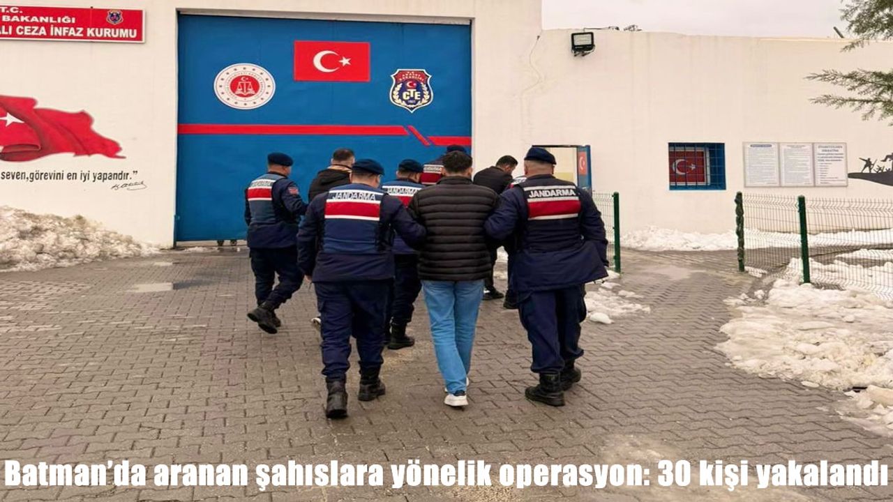 HABER49- Batman İl Jandarma Komutanlığınca kamu düzeni ve güvenliğinin sağlanmasına yönelik Batman merkez ve ilçelerinde gerçekleştirilen operasyonlar neticesinde, farklı suçlardan haklarında arama kararı bulunan 30 şahıs gözaltına alındı. Yakalanan şahıslar, işlemlerinin ardından adli makamlara sevk edildi. Şahıslar, tutuklanarak Batman Kapalı Ceza İnfaz Kurumu ile Beşiri Kapalı Ceza İnfaz Kurumuna teslim edildi.