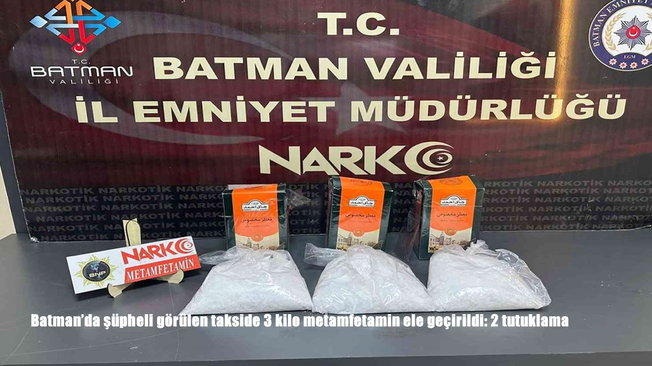 HABER49-İl Emniyet Müdürlüğü Narkotik Suçlarla Mücadele Şube Müdürlüğü ekiplerince yürütülen çalışmalar kapsamında Şehirlerarası Otobüs Terminalinde durdurulan bir taksinin içinde arama yapıldı. Aramada, eşyalar arasında 3 kilo 50 gram metamfetamin maddesi ele geçirildi.