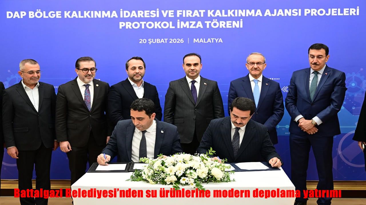Sanayi ve Teknoloji Bakanı Fatih Kacır'ın Malatya programı kapsamında Battalgazi Belediyesi tarafından ilçede hayata geçirilecek Su Ürünleri Soğuk Hava Deposu Merkezleri Projesi için imza töreni düzenlendi. Toplam 52 milyon TL bütçeye sahip olan projenin sözleşmesi, Battalgazi Belediye Başkanı Bayram Taşkın ile Fırat Kalkınma Ajansı Genel Sekreteri Mehmet Şirin Budancamanak tarafından imza altına alındı. Hatunsuyu Mahallesi'nde uygulanacak proje ile ilçede faaliyet gösteren su ürünleri üreticilerinin depolama ve pazarlama imkânlarının geliştirilmesi amaçlanıyor.