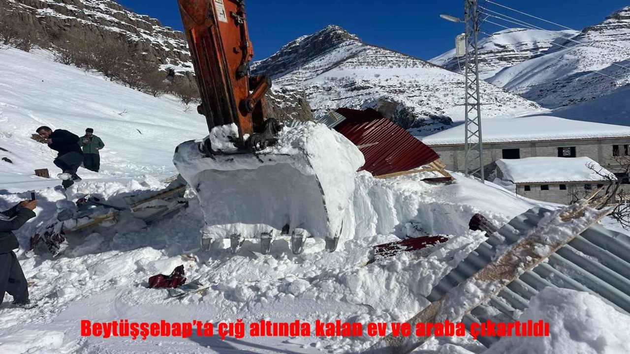 HABER49- İlçeye bağlı Beşağaç köyünde aşırı kar yağışı sonrası 3 ev, 2 baraka ve 1 araba üzerine çığ düşmüştü. Kar kalınlığının 2 metreyi geçtiği köyde çığ altında kalan 5 kişilik aile çevredekilerin yardımıyla çıkarılmış güvenli bir alana götürülmüşlerdi. Beytüşşebap Kaymakamlığı ilçe özel idare ekipleri, günler sonra köye ulaşarak çığ altındaki evlerde çalışma başlattı. Kar yığınları içinde kalan evler ve araba çıkarıldı. Ekipler mutfak ve odalara kadar kar dolan evlerde temizlik çalışması başlattı.
