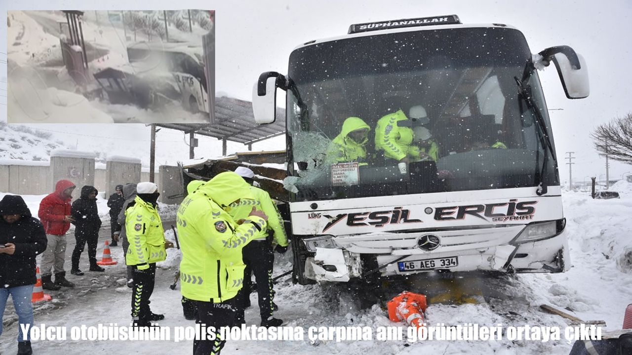 HABER49- Diyarbakır'dan Bitlis istikametine gelen C.D. yönetimindeki Yeşil Erciş firmasına ait 46 AEG 334 plakalı yolcu otobüsü, Arıcılık mevkiinde kar yağışı nedeniyle kayarak sürücünün direksiyon hakimiyetini kaybetmesi sonucu kontrol noktasındaki polis kulübesine çarpmış, kulübedeki 4 polis memuru ise hafif yaralanmıştı. Diyarbakır istikametinden Van’a gelmekte olan otobüsün karıştığı kaza anı ise güvenlik kameraları tarafından saniye saniye görüntülendi.