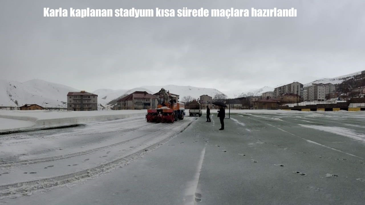 HABER49- Kar yağışının ardından zemini tamamen kapanan stadyumda maçların oynanamaması üzerine harekete geçen ekipler, iş makineleri ve personel desteğiyle kapsamlı bir temizlik çalışması yürüttü. Yapılan hummalı çalışmalar sonucunda saha zemini ve tribün çevresi kardan arındırılarak sporcular ve kulüpler için güvenli hale getirildi.