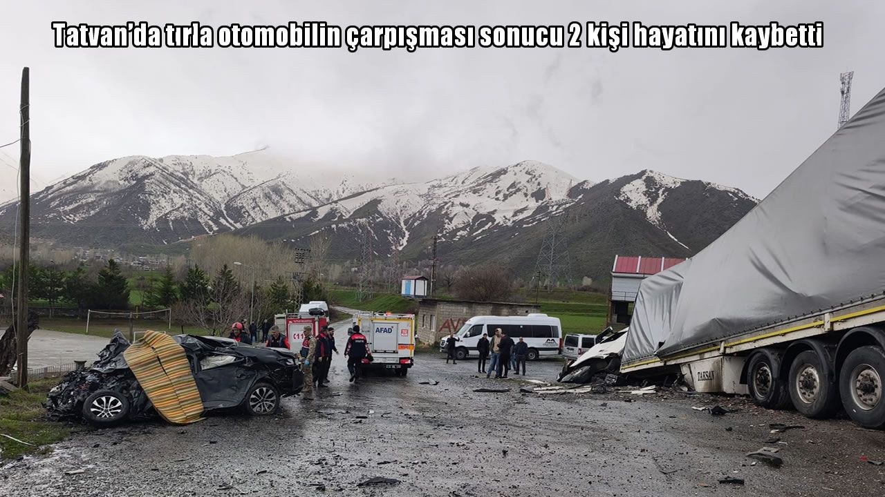 HABER49- Alınan bilgilere göre kaza, saat 09.30 sıralarında Tatvan - Van kara yolunun Düzcealan köyü yakınlarında meydana geldi. Yağmurun etkili olduğu bölgede Van yönünden gelen tır, karşı yönden gelen 06 DEF 867 plakalı otomobille çarpıştı. Meydana gelen kazada otomobilde bulunan 2 kişi olay yerinde hayatını kaybederken, ismi öğrenilemeyen tır şoförü ise yaralandı. İhbar üzerine bölgeye AFAD, UMKE, jandarma, itfaiye ve sağlık ekipleri sevk edildi. Otomobilde bulunan 2 kişinin cenazesi ekipler tarafından çıkartılarak Tatvan Devlet Hastanesi morguna kaldırılırken, yaralı tır sürücüsü de aynı hastanede tedavi altına alındı.