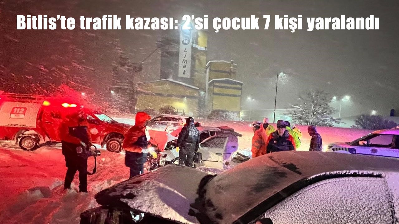 HABER49-Kaza gece 03:00 sıralarında Bitlis-Güroymak yolu üzerinde bulunan Organize Sanayi Bölgesi yakınlarında meydana geldi. Sürücülerin isimlerinin belirlenemediği iki otomobil kafa kafaya çarpıştı. Kazayı görenlerin haber vermesi üzerine olay yerine sağlık ekipleri, ambulans, AFAD, trafik ekipleri ve itfaiye ekipleri sevk edildi. 2’si çocuk 7 yaralının olduğu kazada, yaralılar olay yerine gelen sağlık ekiplerinin ilk müdahalesinin ardından ambulanslarla hastaneye sevk edilirken, çocuklardan birinin durumunun ağır olduğu öğrenildi.