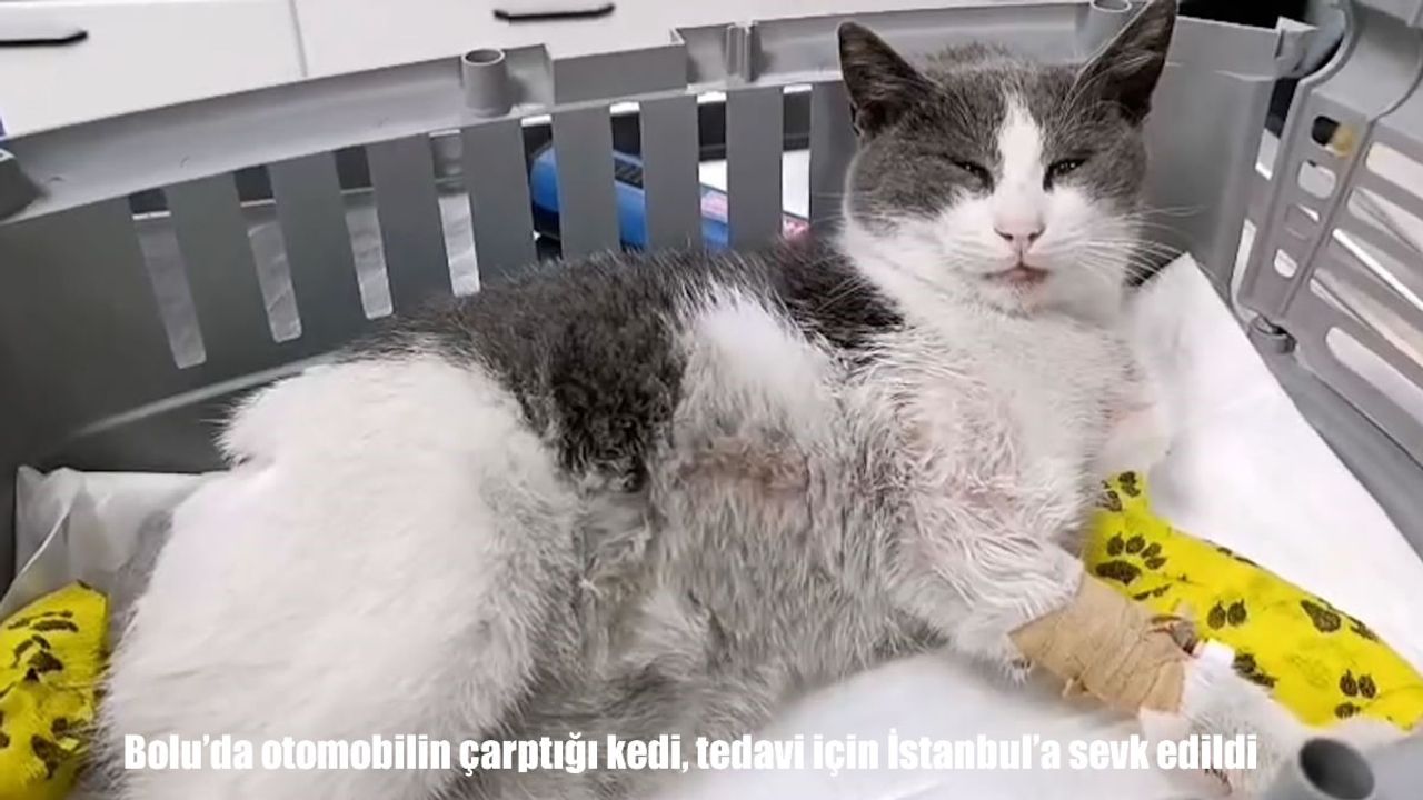 HABER49- Olay, geçtiğimiz perşembe günü Bolu’nun Ali Rıza Tekemen Caddesi’nde meydana geldi. Caddede seyreden bir otomobil, yoldan geçen kediye çarparak ağır yaraladı. Olayı gören Mine Çalık, yaralı kediyi Bolu Veterinerlik Tıp Merkezine götürdü. Veteriner hekimlerin yaptığı muayenede kedinin bacağında, omurgasında ve patilerinde kırıklar olduğu tespit edildi. Bolu’daki veteriner hekimler, kedinin bacağına, patilerine ve kuyruğuna ilk müdahaleyi yaptı. Ancak omurgasındaki iki kırığın tedavi edilebilmesi için yaralı kedi İstanbul’a sevk edildi. Yaralı kedi için sosyal medya üzerinden yardım kampanyası başlatıldı.