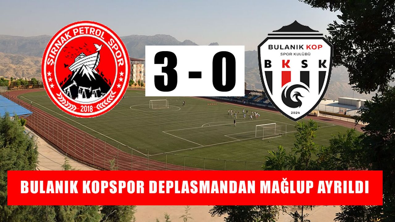 HABER49-Bölgesel Amatör Ligi (BAL) 2025-2026 sezonu 1. Grup’ta mücadele eden Bulanık Kopspor, ligin beşinci haftasında deplasmanda Şırnak Petrolspor ile karşı karşıya geldi. Şırnak Stadyumu’nda oynanan mücadelede ev sahibi ekip sahadan 3-0 galip ayrıldı.