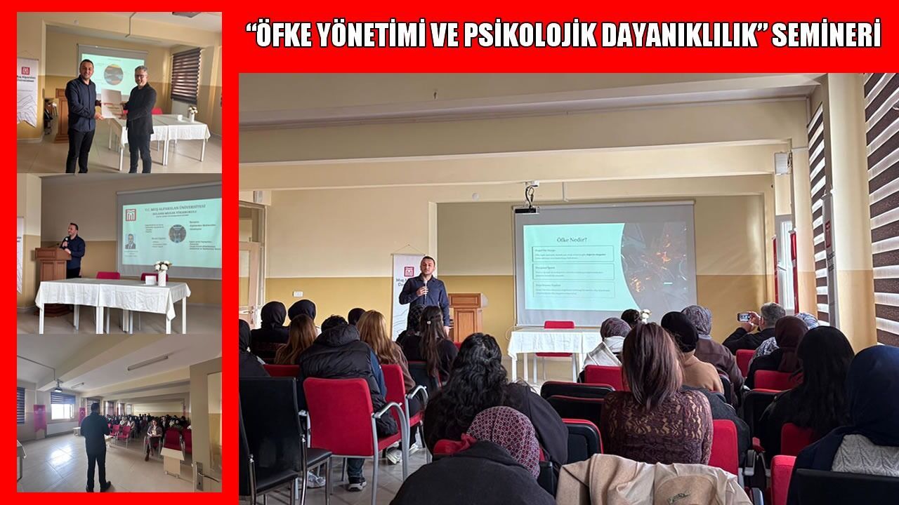 HABER49-Muş Alparslan Üniversitesi Bulanık Meslek Yüksekokulu (MYO), öğrencilerin kişisel gelişimlerine katkı sunmak amacıyla “Öfke Yönetimi ve Psikolojik Dayanıklılık” konulu bir seminer gerçekleştirdi.