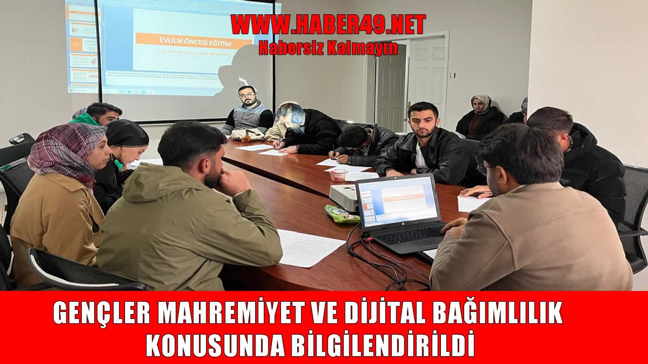 HABER49- Muş Aile ve Sosyal Hizmetler İl Müdürlüğü’ne bağlı Bulanık Sosyal Hizmet Merkezi Müdürlüğü, 2025 Aile Yılı etkinlikleri kapsamında gençleri bilinçlendirmeye yönelik önemli bir adım attı. Bulanık'ta ikamet eden ve evlilik kredisi başvurusunda bulunacak gençler için düzenlenen eğitim programları, hem aile yapısının güçlendirilmesi hem de bireylerin modern yaşamın getirdiği risklere karşı farkındalık kazanmalarını amaçladı. Program kapsamında katılımcılara "Evlilik Öncesi Eğitim", "Mahremiyet Eğitimi" ve "Dijital Bağımlılık ile Mücadele" konularında bilgiler verildi.
