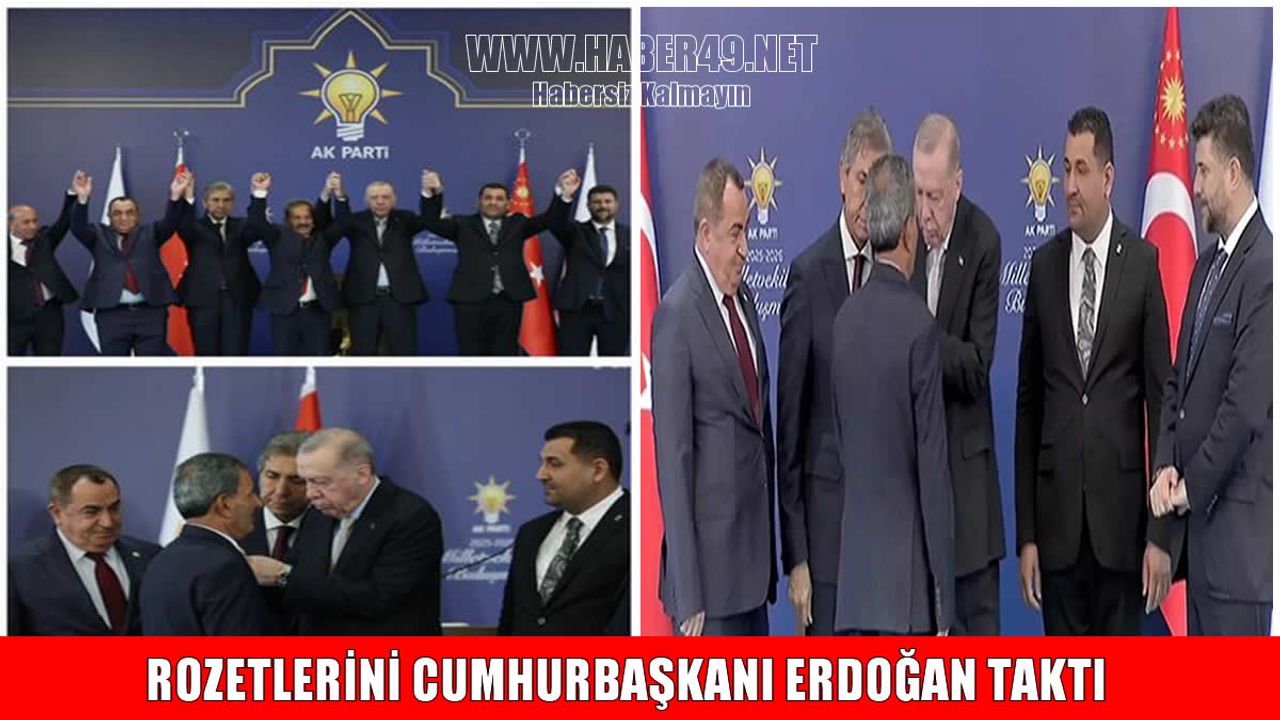 Gündeme ilişkin önemli açıklamalarda bulunan Cumhurbaşkanı Erdoğan, toplantının ardından partiye yeni katılan belediye başkanlarına rozetlerini taktı.