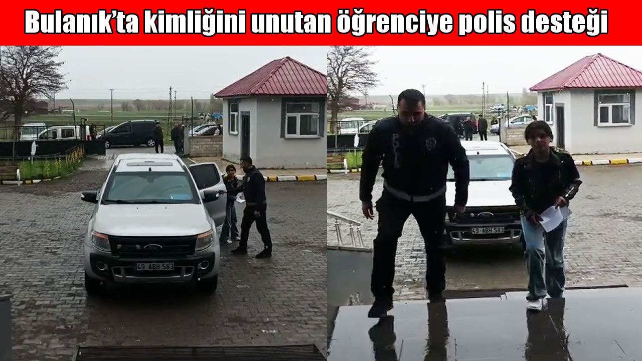 HABER49- Bulanık'ta gerçekleştirilen İlköğretim ve Ortaöğretim Kurumları Bursluluk Sınavı (İOKBS) öncesi yaşanan olay, örnek bir dayanışmaya sahne oldu. Bulanık Anadolu İmam Hatip Lisesi 6. sınıf öğrencisi Ayşenur Kundu, sınava girmek için geldiği okulda kimliğini evde unuttuğunu fark etti. Durumun bildirilmesi üzerine harekete geçen İlçe Emniyet Müdürlüğü'ne bağlı polis ekipleri, öğrenciyi vakit kaybetmeden Şehitlik Mahallesi'ndeki evine götürdü. Kimliğini alan öğrenci, yine polis ekipleri tarafından sınava gireceği okula yetiştirildi.