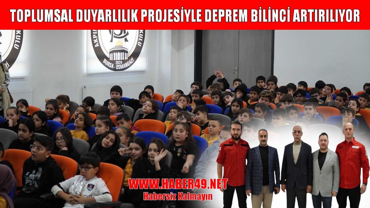HABER49- Bursa Muş Eğitim ve Hizmet Vakfı Başkanı Murat Çermi ve yönetim kurulu üyeleri, toplumsal duyarlılık projeleri kapsamında gençlerin geleceğe daha güvenli hazırlanması amacıyla kapsamlı bir seminer düzenledi. Bu kapsamda, AKUT iş birliğiyle Bursa’nın Akpınar mahallesindeki Selahaddin Eyyubi Ortaokulu öğrencilerine “Deprem Öncesi, Deprem Anı ve Sonrası Bilinçlendirme Semineri” verildi.
