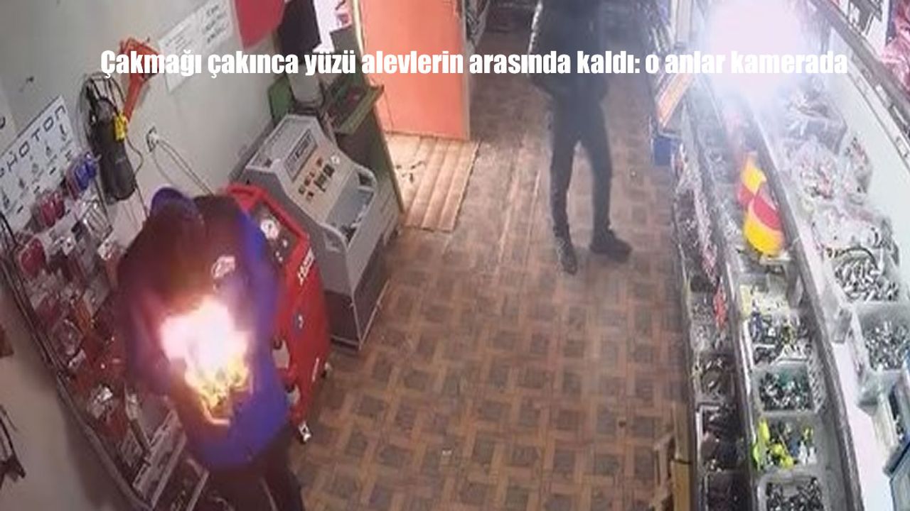 HABER49- Olay, bir oto elektrik dükkanında meydana geldi. Edinilen bilgiye göre, dükkanda çalışan bir işçi, kabloyu eritmek için çakmağı çakınca o sırada elinde bulunan yapıştırıcı sprey bir anda alev aldı. Yüzü kısa süreliğine alevler arasında kalan çalışan, sprey kutusunu yere attı. Kısa bir şokun ardından kendine gelen çalışan, yerde yanan sprey kutusunu alarak dışarı attı. O anlar kameralara yansıdı.
