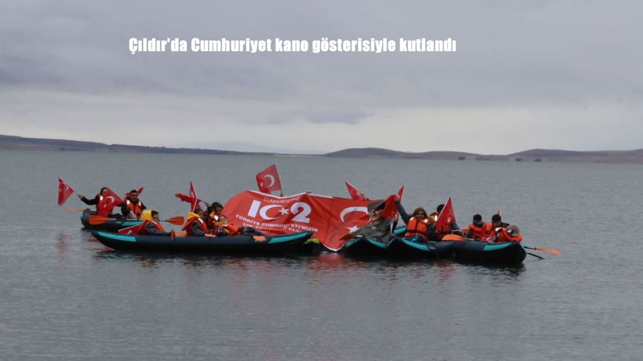 Kanolarıyla göl üzerinde gösteri yapan çocuklar, ellerinde Türk bayrakları ve Azerbaycan bayrakları ile Gazi Mustafa Kemal Atatürk'ün posterini açarak, Çıldır Gölü üzerinden Cumhuriyetin kurucusu Atatürk'ü selamladılar.