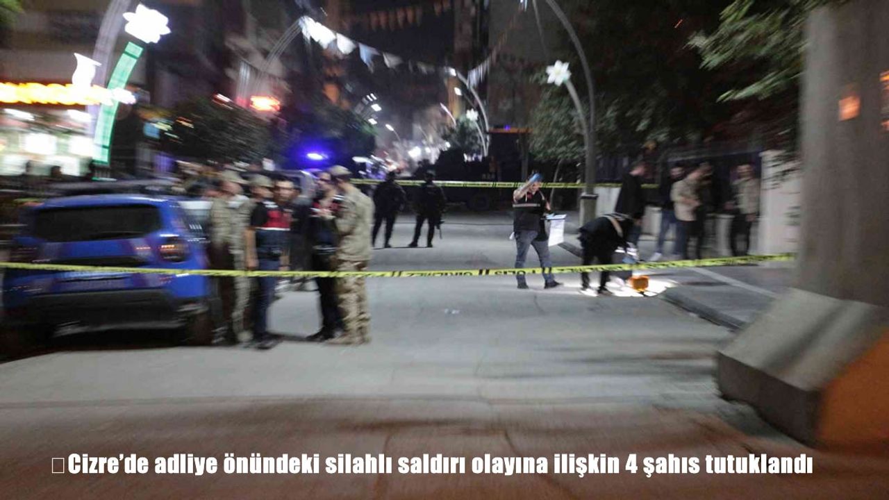 HABER49- Şırnak’ın Cizre ilçesinde, adliye binası çıkışında meydana gelen ve 1 kişinin hayatını kaybettiği silahlı saldırıyla ilgili gözaltına alınan 2’si kadın 4 kişi tutuklandı.