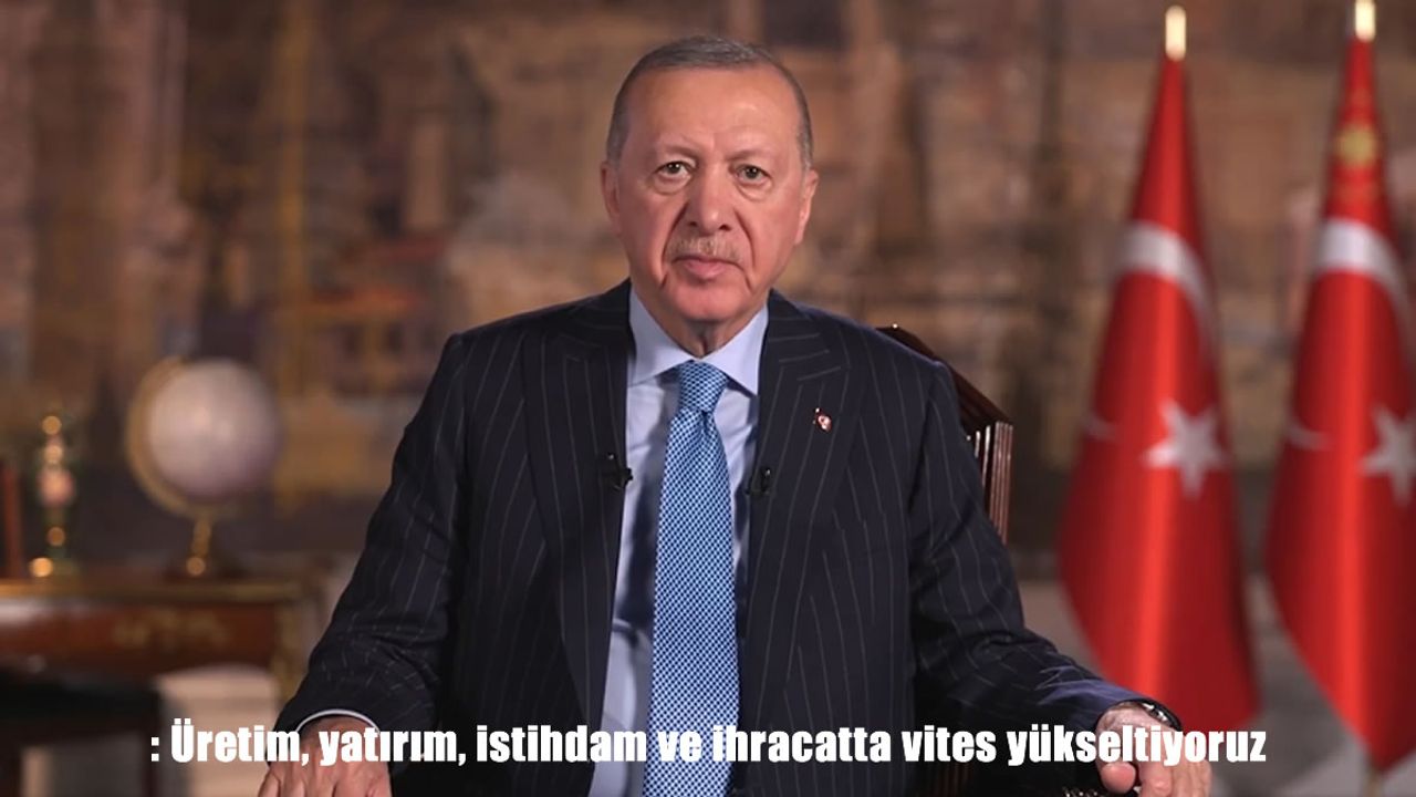 "Bölgemizde etkisi artan savaş, kriz ve gerilim ortamına rağmen emin ve ehil kadroların yönetiminde Türkiye kutlu yolculuğunu güvenle sürdürüyor. Kararlılıkla uyguladığımız ekonomi programının olumlu sonuçlarına geniş bir yelpazede şahitlik ediyoruz. Dezenflasyon süreci devam ederken, Merkez Bankamızın rezervleri güçleniyor. Üretim, yatırım, istihdam ve ihracatta vites yükseltiyoruz. Turizmden savunma sanayiine birçok alanda rekordan rekora koşuyoruz. İlk kuraları iki gün önce çekilen 500 bin sosyal konut projemizin dar gelirli vatandaşlarımızı çok uygun şartlarla ev sahibi yapma yanında konut ve kira fiyatlarındaki köpüğün inmesine de katkı vereceğine inanıyorum. Ekonomide elde ettiğimiz kazanımları bu sene reformlarla taçlandırmak niyetindeyiz. Büyük kongremizde açıkladığımız Türkiye Yüzyılı Reform Programımızı, Meclis'imizin de desteğiyle inşallah adım adım hayata geçireceğiz."