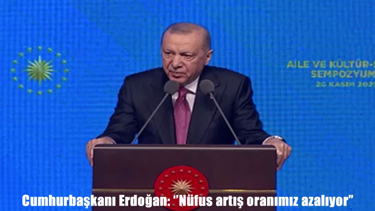 HABER49- Cumhurbaşkanı Recep Tayyip Erdoğan, "Aile ve Kültür-Sanat Sempozyumu"nda konuştu. Erdoğan, "Nüfusumuz artıyor fakat nüfus artış oranımız azalıyor. TÜİK'in açıkladığı verilere göre geçtiğimiz yıl ölçülen toplam doğurganlık hızı 1,48. Şu anda bir felaketi yaşıyoruz. Geleceğimiz açısından alarm zilleri hem de yüksek sesle çalıyor" dedi.