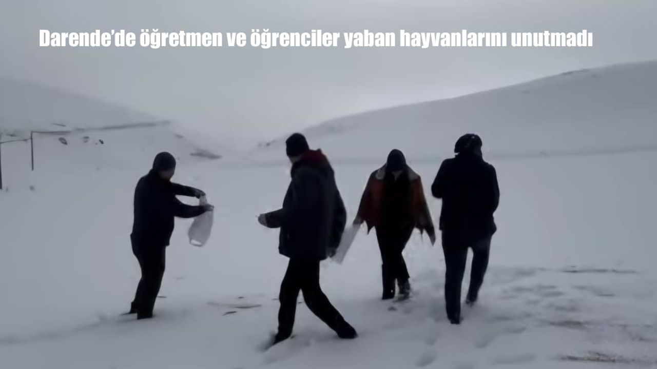HABER49-Kar yağışının etkili olduğu Darende ilçesinde öğretmen ve öğrenciler dağlık bölgelerde ekmek, buğday, ot gibi besin maddelerini doğaya bırakarak hayvanların yiyecek bulmasına yardımcı oldu.
