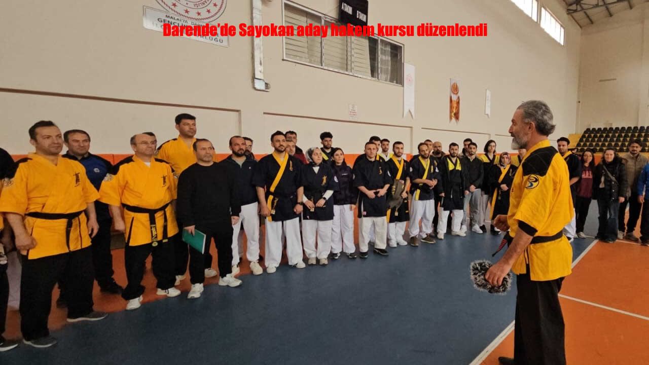 Darende Kapalı Spor Salonu’nda gerçekleştirilen eğitim programı, Türkiye’nin farklı illerinden gelen sporcuların yoğun ilgisiyle dikkat çekti. Kursun, Sayokan branşında hakemlik yapacak yeni isimlerin yetiştirilmesini hedeflediği belirtildi.