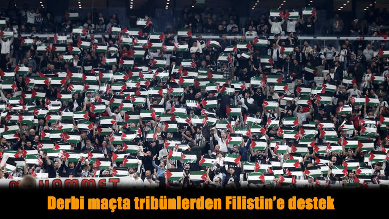 Tüpraş Stadı'nda oynanan derbi maçta siyah-beyazlı tribünler Filistin'i unutmadı.