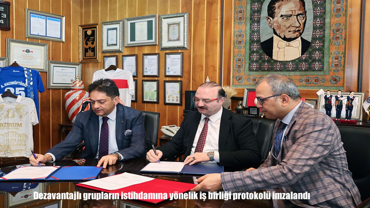 haber49-"Dezavantajlı Grupların Hizmet Sektörüne Kazandırılması Projesi" kapsamında hazırlanan protokol; Atatürk Üniversitesi Rektörü Prof. Dr. Ahmet Hacımüftüoğlu, Erzurum Cumhuriyet Başsavcısı Adem Aydemir ve Erzurum Ticaret Borsası Yönetim Kurulu Başkanı Hakan Oral’ın katılımıyla imzalandı.